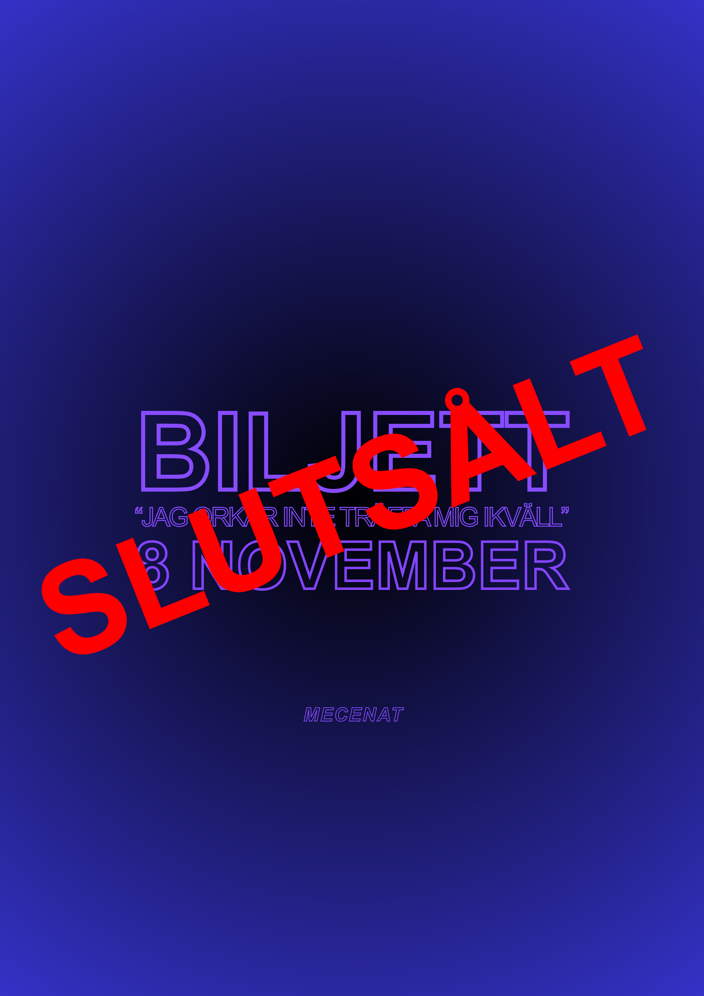 Du kan endast köpa EN biljett åt gången, då vi behöver alla namn på lista vid insläpp.